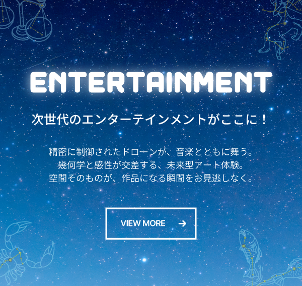 音楽や照明と連動した正確な飛行で、イベントや商業施設、式典などに新たな感動と価値を生み出します。